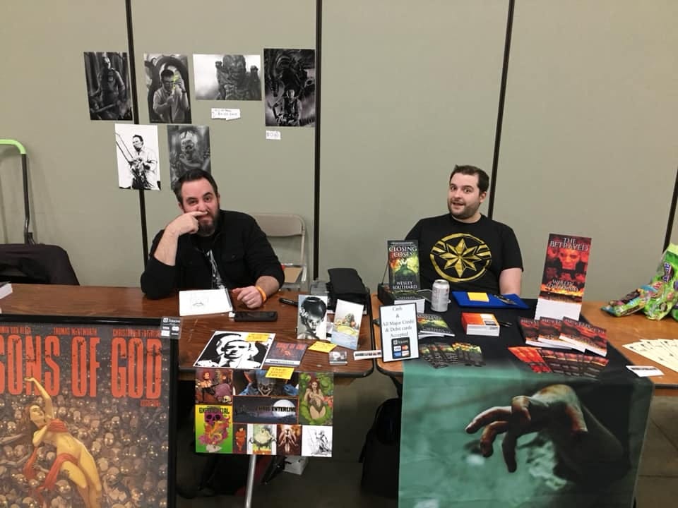 Me and my friend of 30 years, Bill Wahl, owner of Comix Connection, whom I made a character in both DARK HOLLOW and DEAD OF NIGHT: DEVIL SLAYER. That's Justin in the background. We'll get to him in a moment.