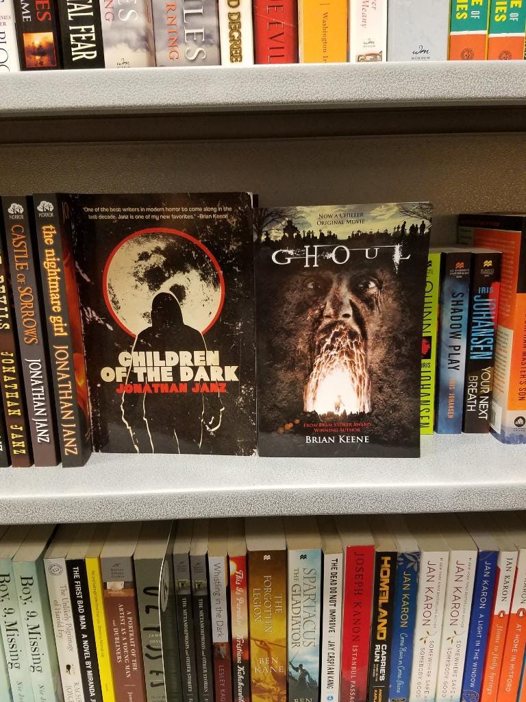 The other thing I like about this picture is that there are more Jonathan Janz books than there are of mine. The new generation of horror writers are so good and so varied and so diverse, and it really is impossible to pick just one -- but if you put a gn to my head and made me pick my top five of the "new kids" then Janz would certainly be number one on that list. I love, love, love seeing his backlist on that shelf.