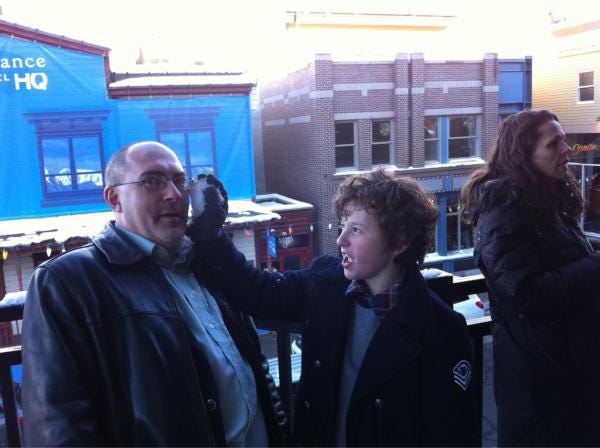 And in between interviews, star Nolan Gould (Modern Family) and I pelted our friends, loved ones, the press, and random passerby with snowballs. Photo by Mary.