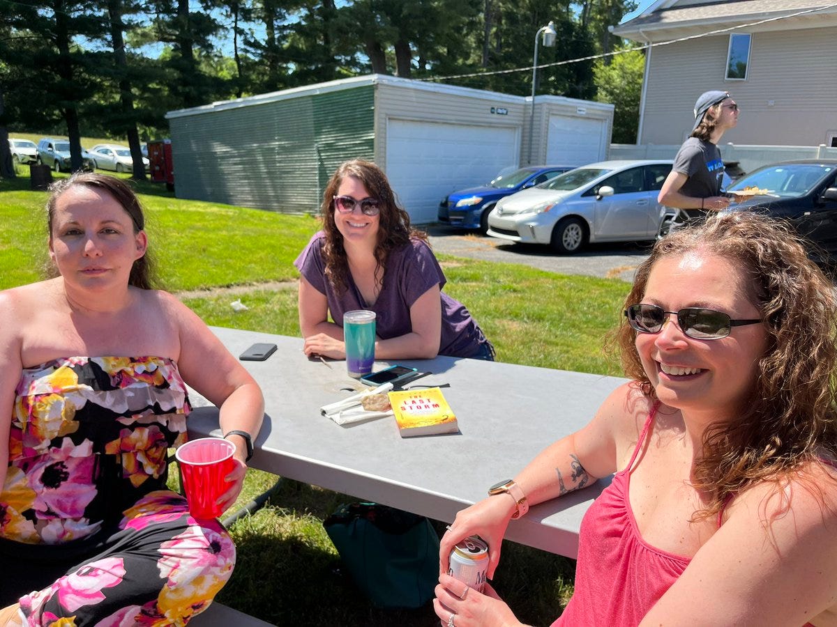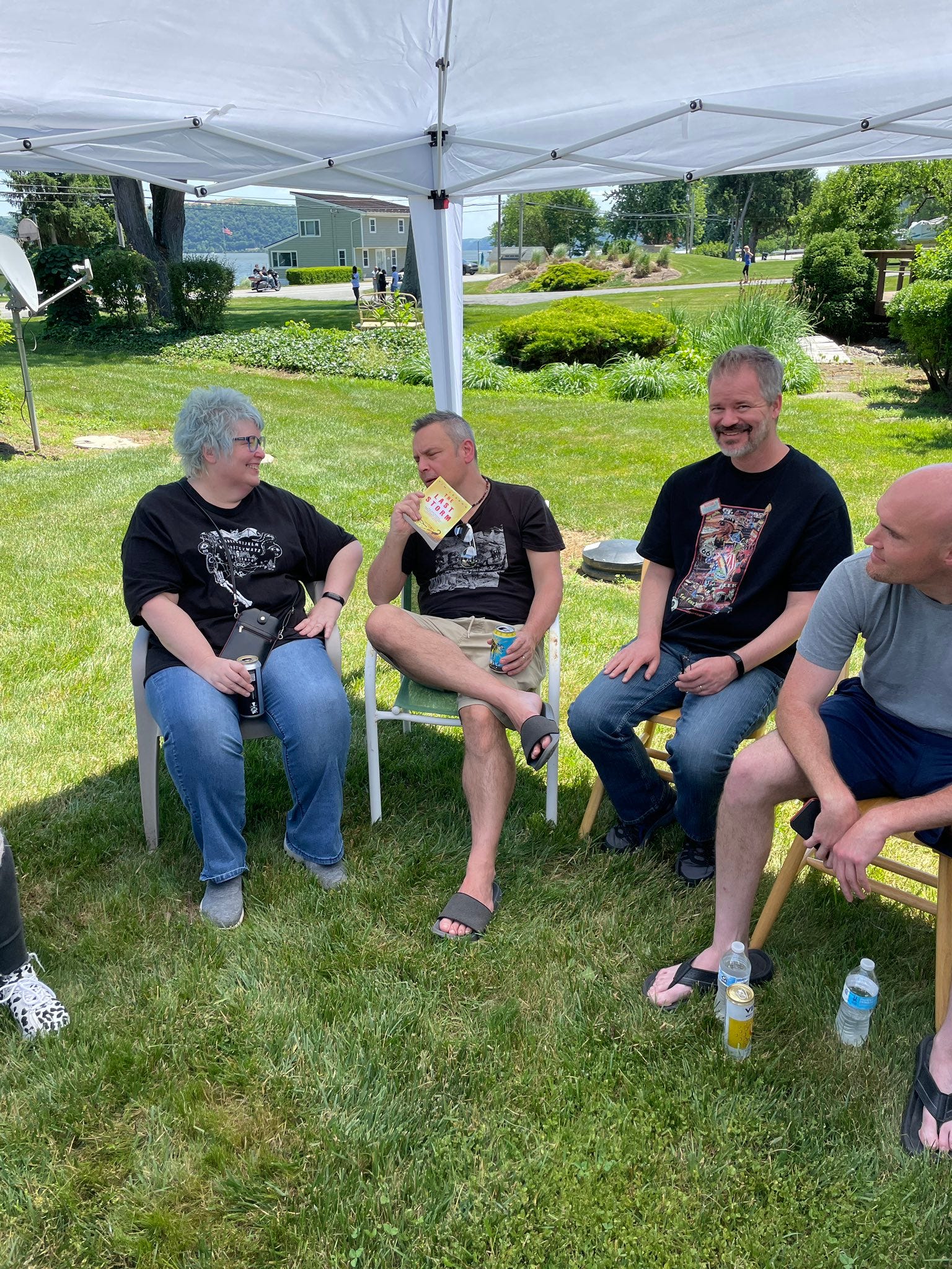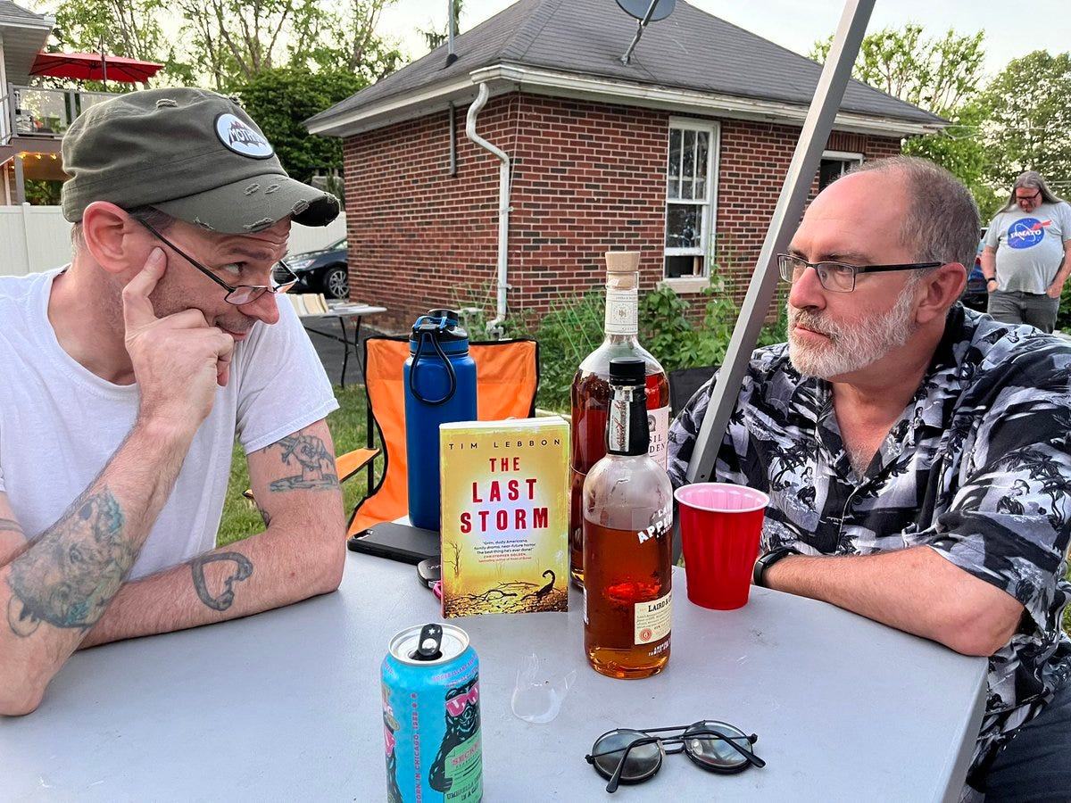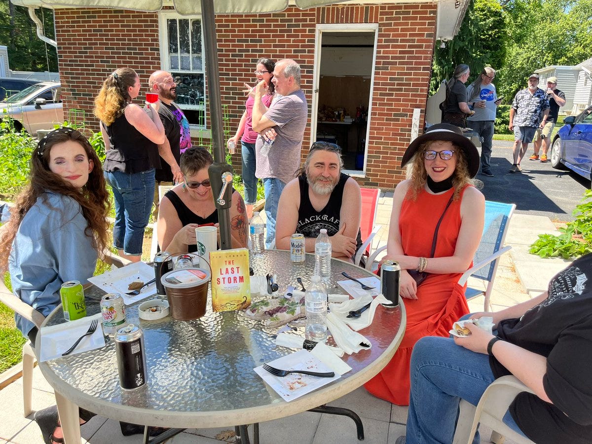 It was so great to see everyone. You might think that with 54 people, it becomes like a convention and you don’t get to spend time with each person. But that’s not so. Conventions are great, but the older I get, the more I enjoy these type of private gatherings. As Lynne Hansen and Joe Ripple both put it, it’s nice to see each other outside of professional settings, and not have to be “on”, and just hang out. And there were some neat moments, like the fact that Samantha Kolesnik and Hailey Piper — who have been online friends for years — finally got to meet in person. Or the absolute side-splitting laughter coming from Coop, Rio, and Christian jensen over at one of the picnic tables. Or the expression on Candace Nola’s face when Mary invited her to write something for the Tempest imprint at Thunderstorm Books. Or Mike Lombardo’s decision to releasing a short story collection before he begins filming his next movie. Or eavesdropping on the kids’ D&D game (which my youngest son was running for all the kids in our library) and hearing their laughter and flashing back to when my friends and I sounded the same way at that age with our D&D games.