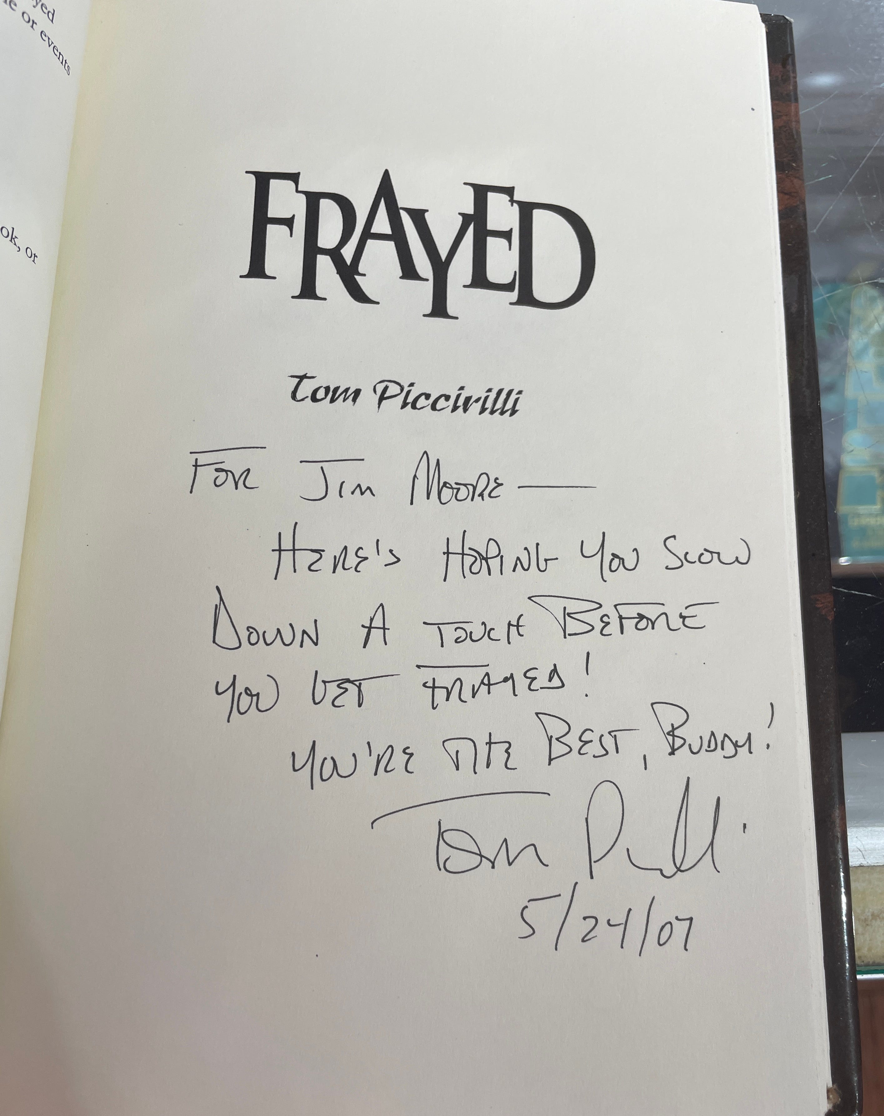 The Sumerians, and the Stoics in ancient Greece, and then Friedrich Nietzsche, and then later Alan Moore, Stephen King, Laird Barron and then Rust Cohle have told us that time is a flat circle. I wrote an entire book, END OF THE ROAD, based on my belief in this concept -- the theory of Eternal Return. Time is cyclical and the same events will repeat themselves throughout eternity. And all of it is happening at once, but we can't perceive it that way, because we only see in three dimensions. It is 2007 and Pic is signing this for Jim, and then later, all of us head off to the hotel convention bar for a drink. It is 2024 and Pic and Jim are gone, and this blows up in my face, and I drink alone. This has happened before. This will happen again. I will always end up drinking alone.