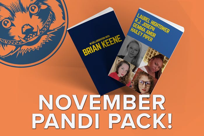 We are down to the final five days on the Pandi Press Kickstarter. Next year, they’ll be doing monthly book boxes called Pandi Packs. The box for next November is curated by me. It will contain a collection called THE BEST OF BRIAN KEENE which will gather together the very best of my short stories — the perfect thing for longtime fans and new readers alike. The box will also contain a second collection curated and edited by me, featuring brand-new novellas by Laurel Hightower, R.J. Joseph, Gemma Amor, and Hailey Piper.