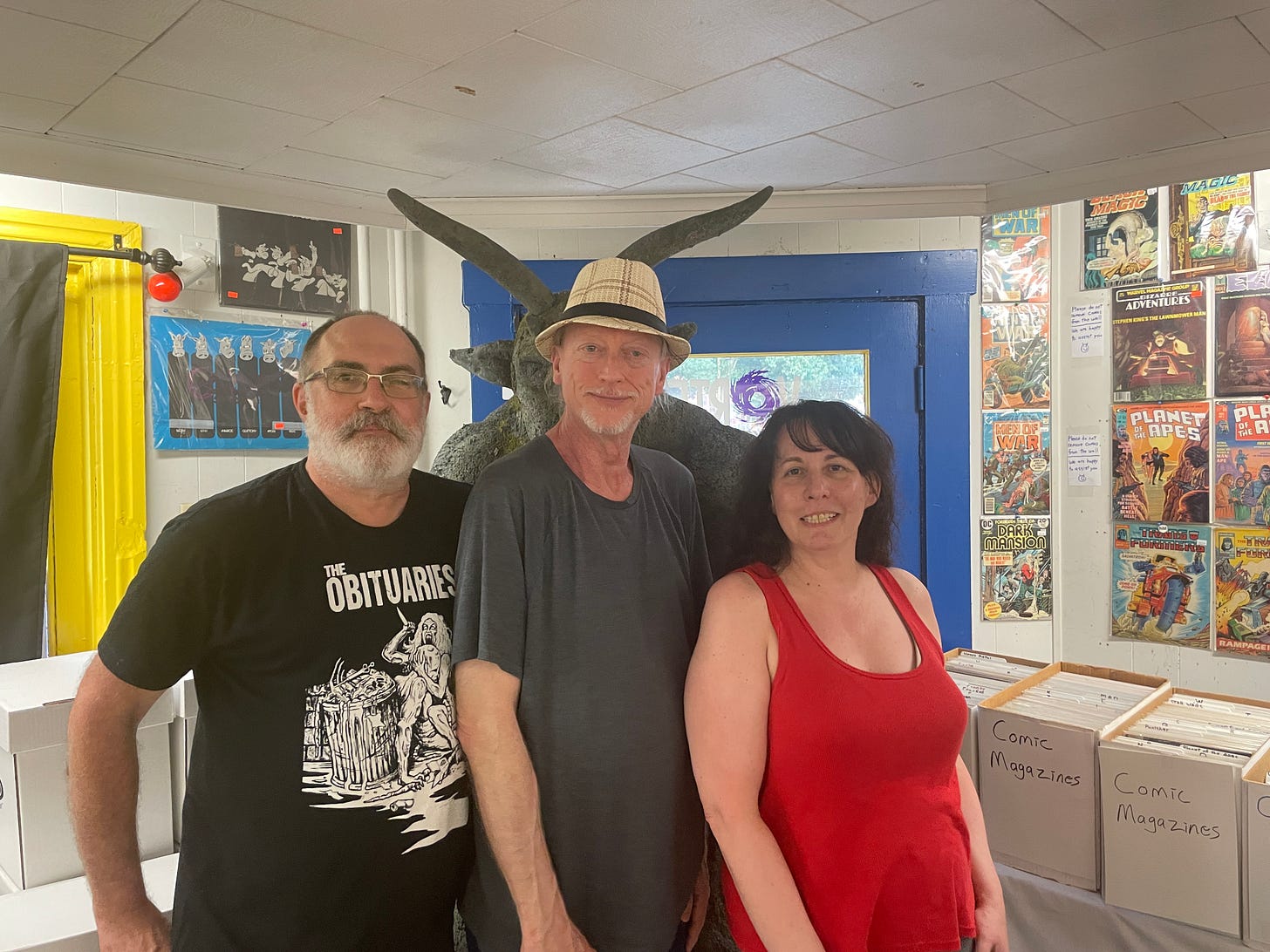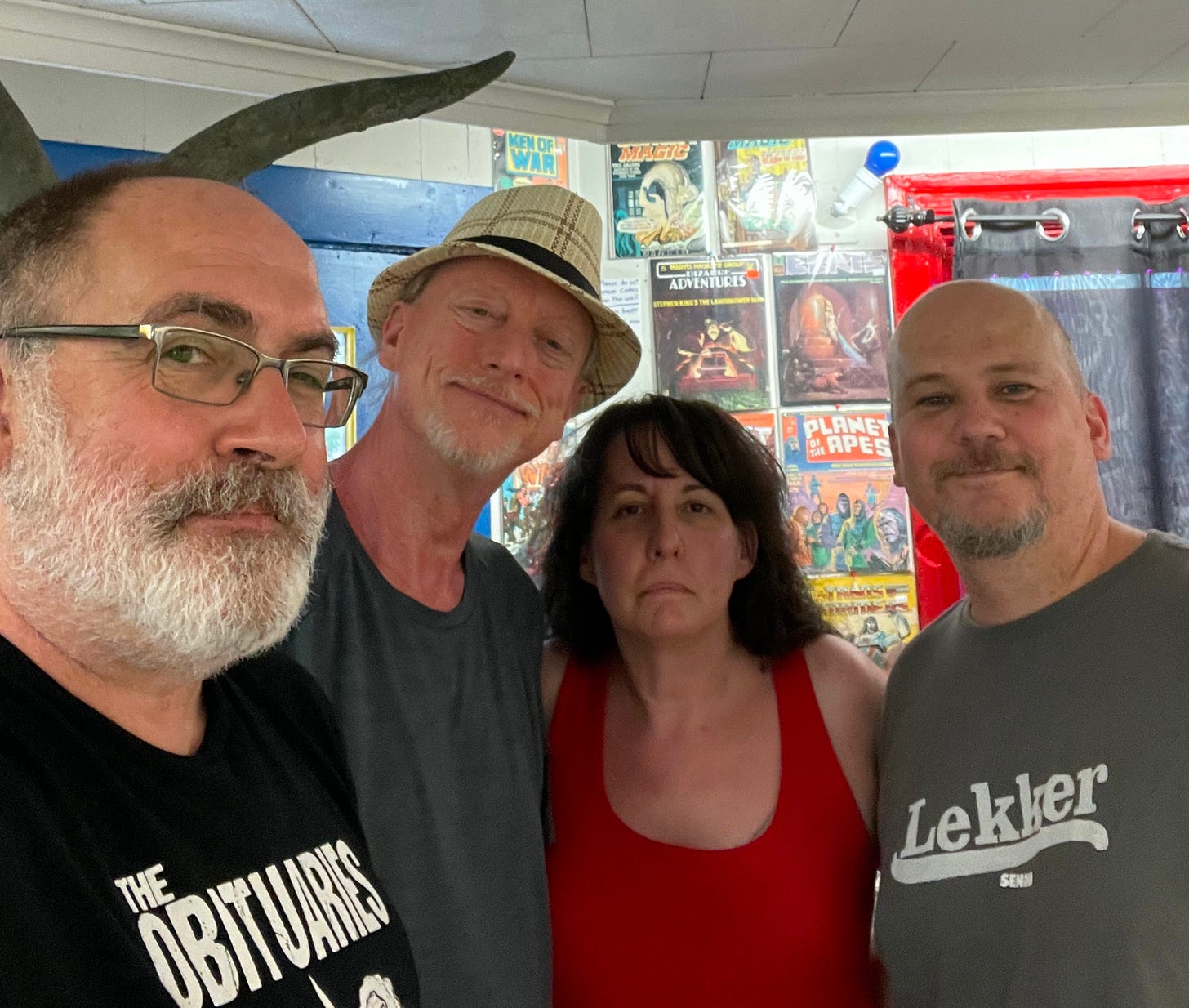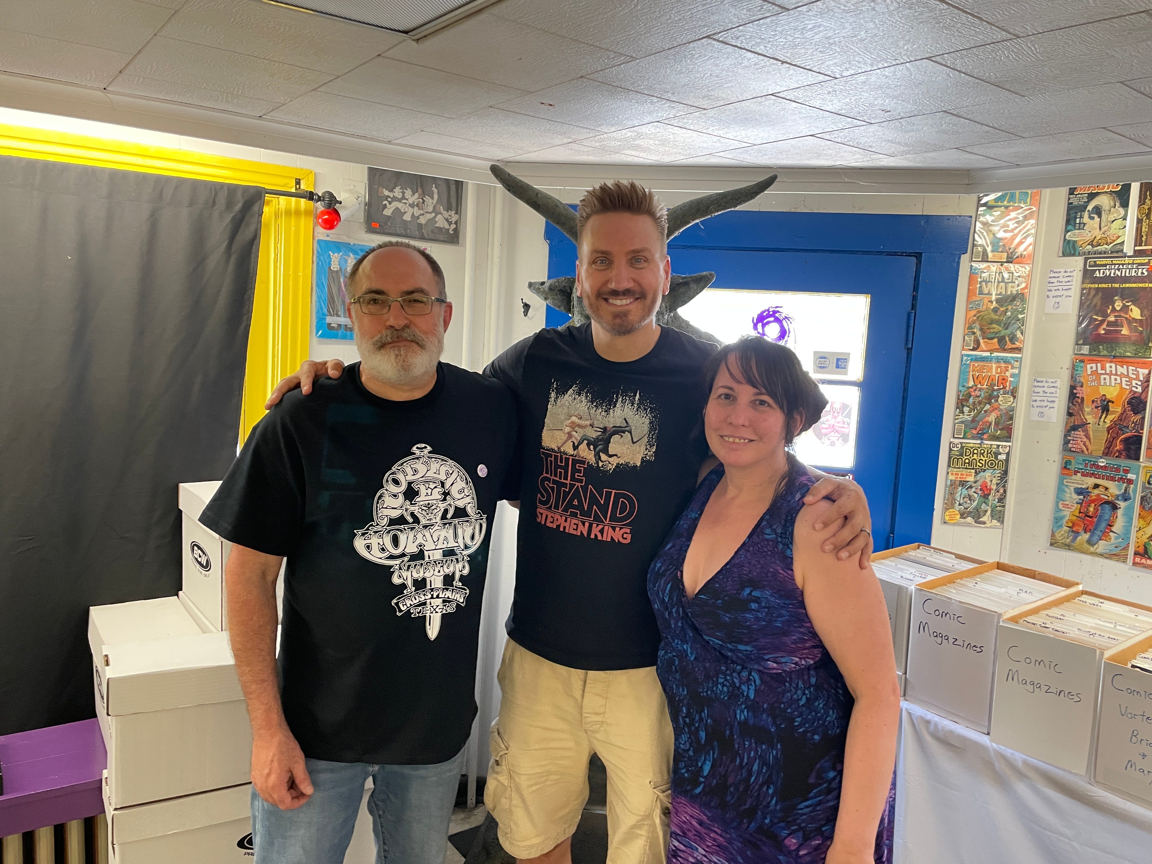 We weren’t able to stay for the entire night, since we both have to be up early this morning to reopen the store (and also type up this newsletter), but it was great to see so many awesome folks, like long-time reader Susan Repasky, and Angel and Vince from Scares That Care, and my high school pal Jessica, and so many more.
