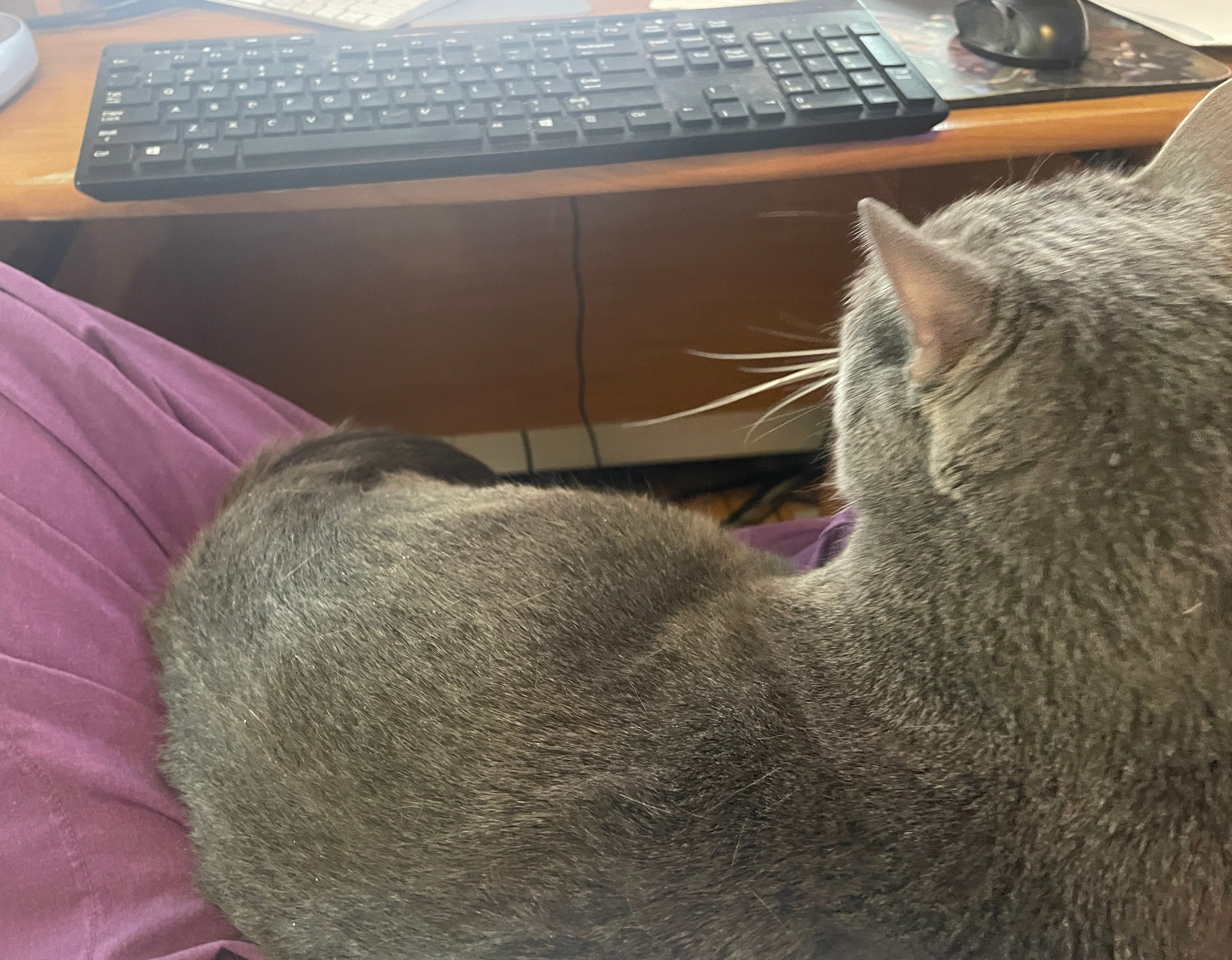 Which, as it turns out, is good for my back, because in order to type, I have to sit up straight and stretch my arms out like the Frankenstein Monster so that I can reach the keyboard. That is, in fact, how I am typing right now.